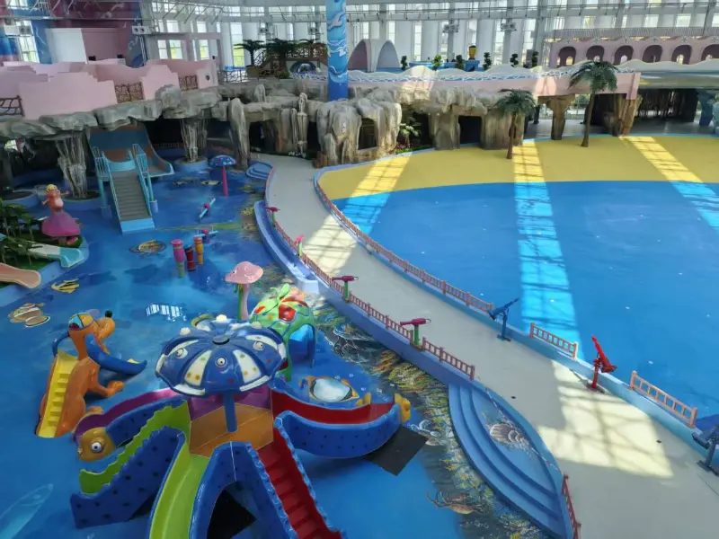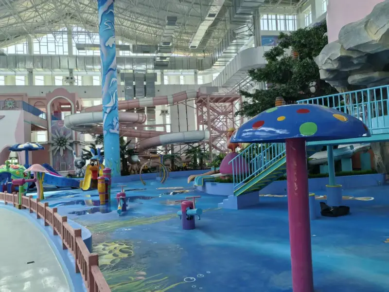 El parque acuático cubierto cuenta con atracciones emocionantes, como una gran piscina de olas, un río lento, un tobogán de embudo gigante, un tobogán de arco iris y un tobogán de mariposas, así como instalaciones adecuadas para niños, como mini toboganes de agua y toboganes de arco iris más pequeños. Además, hay 33 piscinas de aguas termales temáticas diferentes, tanto interiores como exteriores, junto con una piscina infinita y una piscina de hidromasaje.